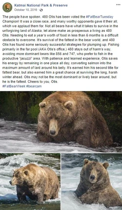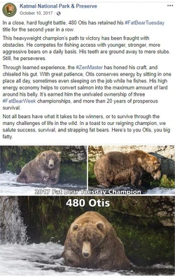 Fat Bear Week was born in 2014 as a way to celebrate all the hard work that these bears do to survive and thrive and get through six months of starvation Boak says. Enter the Fat Bear Week Campaign Poster contest between now and September 25th for the chance to win a Bear Cam 2020 prize. Dear Holly Game on.